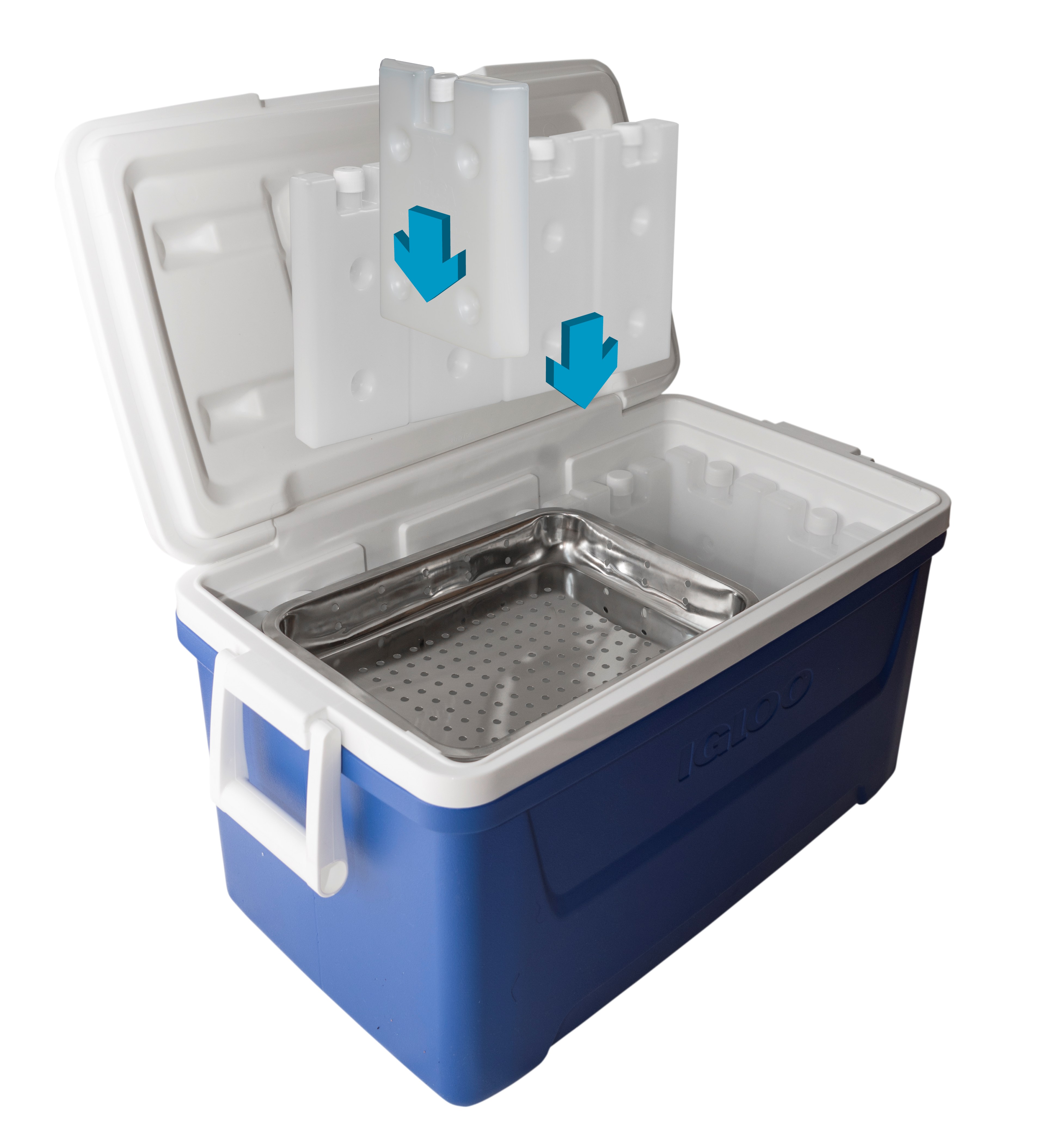 | Material | Plástico de alta densidad resistente al impacto, liso, lavable e inerte; aislamiento de poliuretano libre de CFC; tapa hermética con bisagras; interior con curvas sanitarias y paquetes refrigerantes reutilizables. |