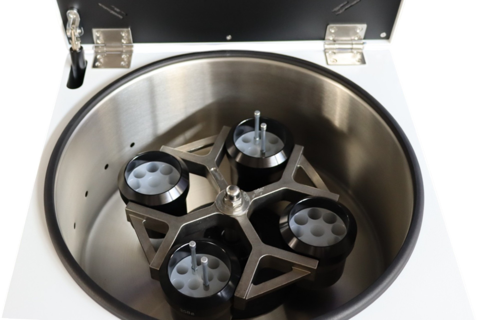 | Centrífuga de mesa con rotor basculante, diseñada para manejo de volúmenes mayores en muestras clínicas. Permite trabajar con tubos desde microtubos hasta recipientes de 250 ml, con capacidad de 4 vasos y hasta 40 tubos de 5 ml o 36 tubos de 10 ml. Integra hasta 100 programas, múltiples rampas de aceleración y frenado, con dimensiones de 55 x 35 x 43 cm (An x Al x Pr) |
