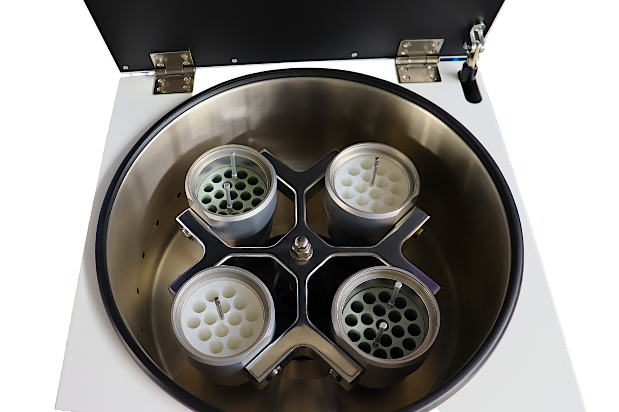 | Centrífuga de mesa con rotor basculante para procesamiento de muestras de mayor capacidad, permitiendo el manejo de recipientes hasta 500 ml. Puede centrifugar hasta 76 tubos de 5 ml o 56 tubos de 10 ml, con control digital, programación de ciclos y múltiples rampas de operación. Dimensiones aproximadas de 56 x 42 x 45 cm (An x Al x Pr), ideal para laboratorios con alto flujo de muestras |