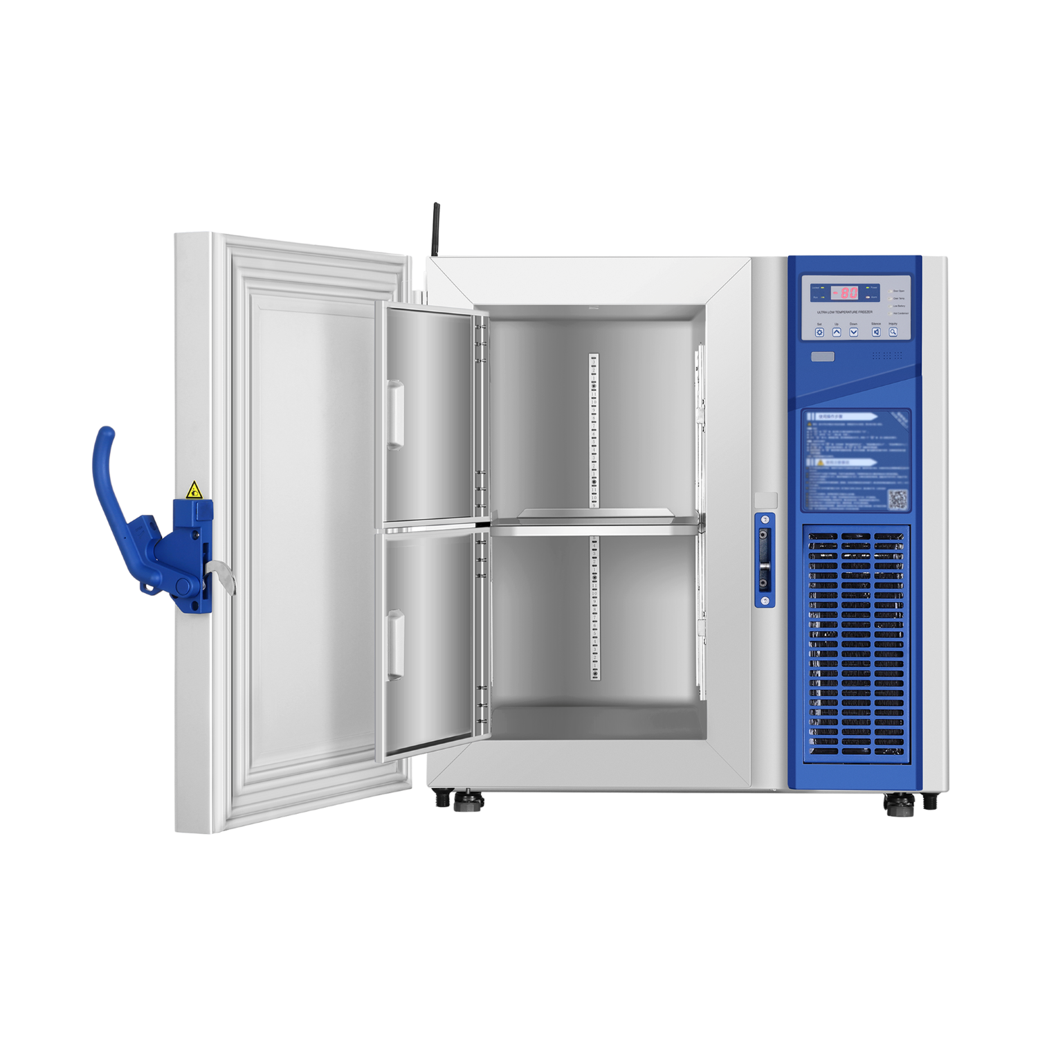 | Ultra-congelador de bajo volumen con capacidad de 100 L / 3.5 p³, diseñado para conservar muestras biológicas, reactivos y vacunas a temperaturas ultra bajas. Opera en un rango de -40 °C a -86 °C con control digital preciso, pantalla LED y sistema de alarmas para variaciones térmicas, puertas abiertas o fallos eléctricos. Ideal para laboratorios, bancos de sangre y unidades de investigación |