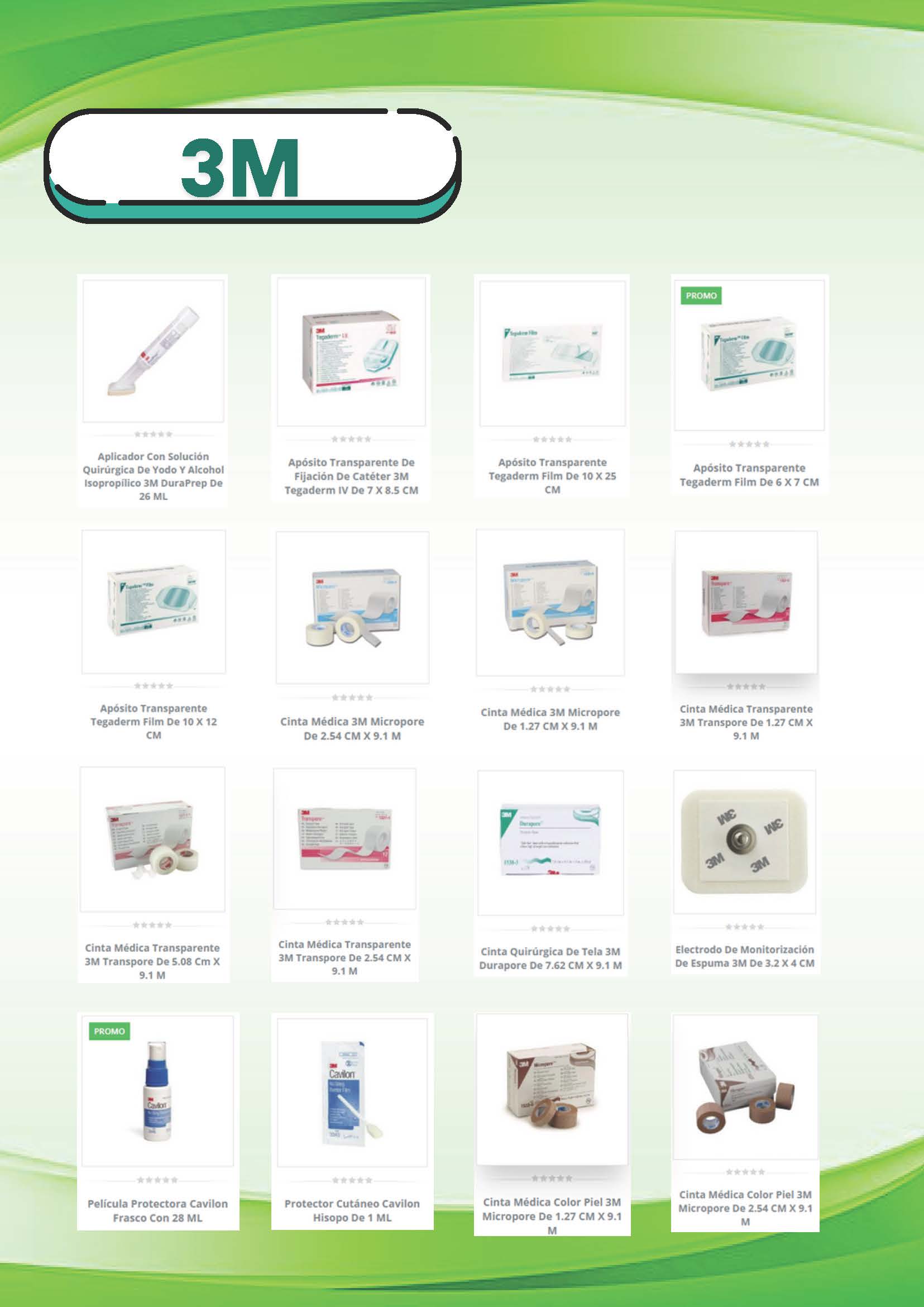 | Marca | 3M, ANSELL, DB, CARDINAL HEALTH, CONVATEC, DIVESEY, ESSITY BSN MEDICAL, HOLLISTER, MEDTRONIC, SMITH & NEPHEW, MOLNLYCHE, EMBECTA, DIVERSEY, AMBIDERM, COVIDIEN, SOLVENTUM, EDIGAR, ARROW, LE ROY, OWENS & MINOR, DEGASA, ARTICULOS HIGIENICOS |