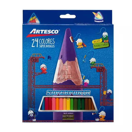 | Colores triangulares Artesco largos cajacon 24 piezas |