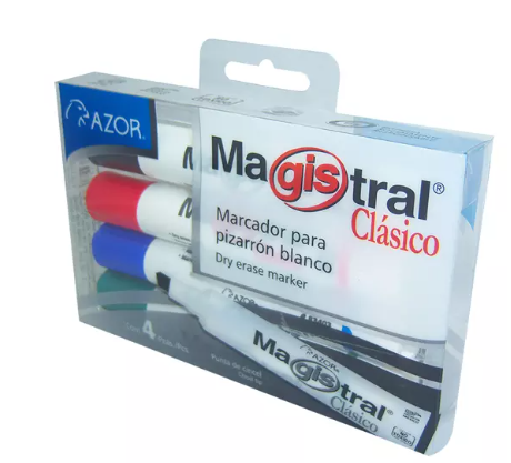 | Marcador Magistral Clásico punta cincel6 mm colores surtidos empaque con 4 pzas |