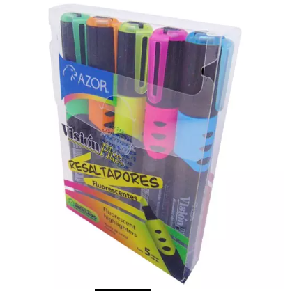 | Resaltador de texto Vision Plus cincel 6mm colores surtidos empaque con 5 pzas |