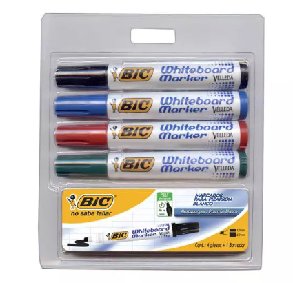| Marcadores para pizarrón blanco BIC Marking blíster con 4 colores + 1 borrador |