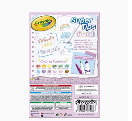 | Marcadores Crayola lavables Super Tip Pastel 12 colores |