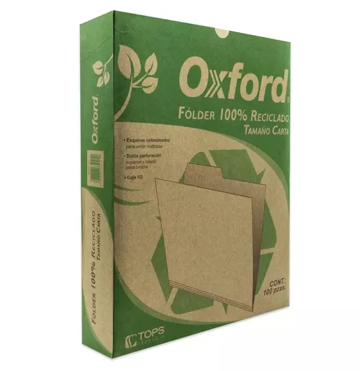 Folder reciclado Oxford carta ceja 1/2 caja con 100 pzas