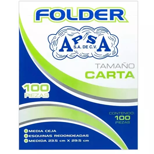 | Folder verde APSA tamaño carta , paquete con 100 piezas |