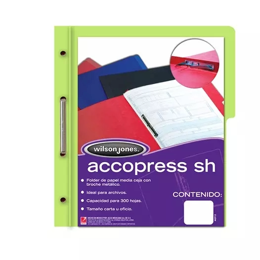| Carpeta pressboard Accopress sh ACCO carta color verde claro con broche de 8 cm |