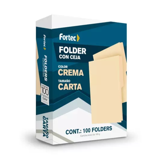 Folder manila económico Fortec oficio color crema ceja 1/2 caja con 100 pzas