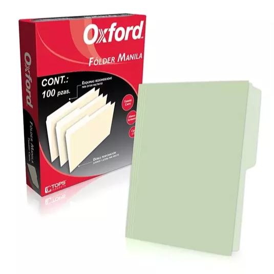 | Folder manila Oxford oficio color verdeceja 1/2 caja con 100 pzas |