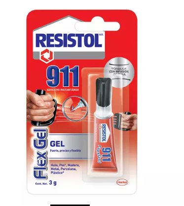 | Pegamento instantáneo Resistol 911 FlexGel, tubo de 3 grs |