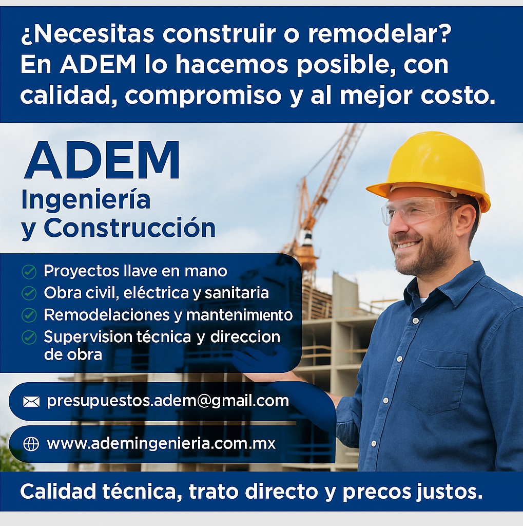 Construcción de obra residencial, edificios, centros comerciales, construcción de obra civil y mantenimiento. |